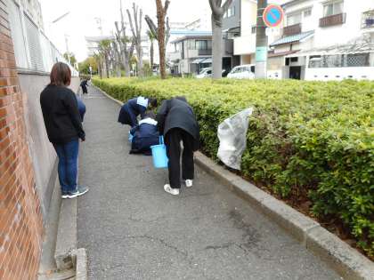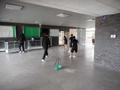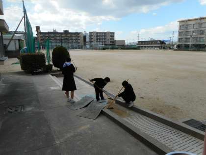 1年生は校舎内の清掃、2年生は式場設営を行いました。