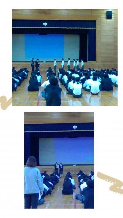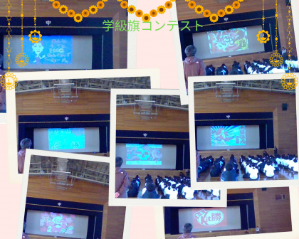 各クラスの代表が、旗に込めた思いやデザインの工夫を熱心に発表しました。