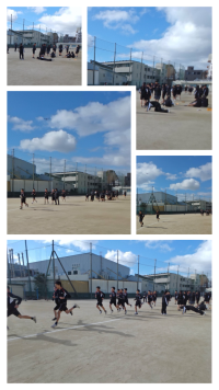 3年生の2時間目は、体育の授業でトラックレースの練習に取り組んでいます。