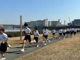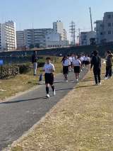マラソン大会スタートは女子から、スタート地点に集合し軽いストレッチの後、ホイ...