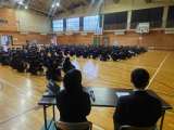 学校に帰校ご体育館で、マラソン大会閉会式を行いました。 体育委員長から結果...