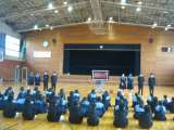 前期生徒会役員立候補者の立会演説会を開催しました。 舞台の緞帳が上がらなく...