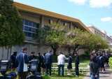 新しいクラス写真を撮影しました。 中庭の芝生広場で写真撮影です。満開だった...