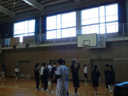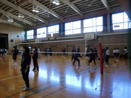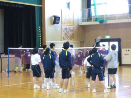 体育館では、バドミントン・バレーボール・バスケットボールの体験をしています。