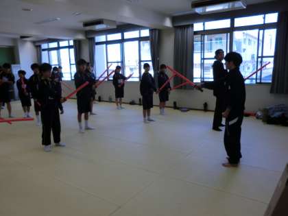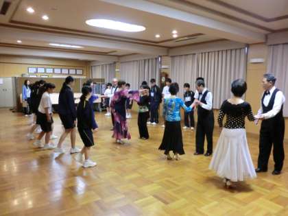 多目的室では社交ダンス、LL教室では護身術の体験をしています。