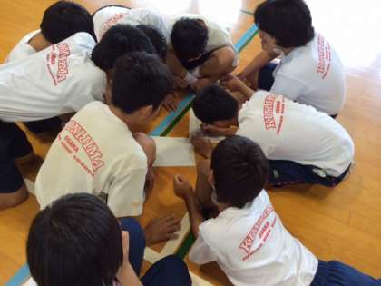 9月5日の5時間目、フェスタに向けて赤、青、黄団に分かれての活動を行いました。