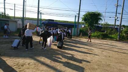 予定通り、広島に向けて出発しました。生徒たちは、本当に元気一杯です。