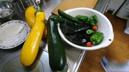 昨夜は、ホタルを観賞したり、ウミホタルを見た生徒たちもいました。収穫した野菜、釣った魚の写真です。
