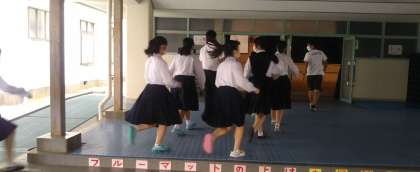 5限目に、調理室から火災が発生したことを想定した避難訓練を実施しました。避難するときの約束ごと"押さない""走らない""しゃべらない""戻らない"を守っての訓練でしたが、避難完了まで3分49秒でした(目標は3分30秒を切る)。