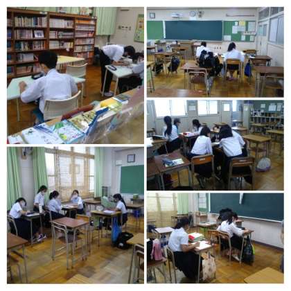 放課後、図書室や教室で明日からの期末テストに向けて、元気アップの取り組みである"柴スタ"や部活動での学習会に自主的に参加して、学習に取り組んでいます。今年度初めての期末テストでは、"苦手やなぁ""できないのでは"などの失敗するイメージを持たず、"好きだ""できる"と思い込んで、頑張りましょう