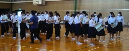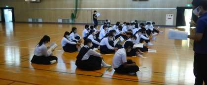 3年生は5,6限目に体育館で、修学旅行に向けての最終確認をしました。集合の隊形、新幹線の乗車隊形、バス座席、ガタリンピックのチームなど、当日にスムーズに進むように確認しました。
