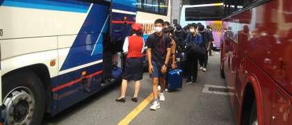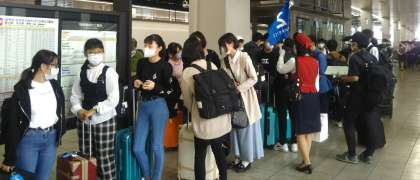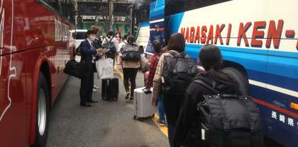 10:00 博多駅に到着しました。バスに乗車して出発します。