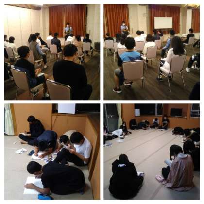 A組、B組に分かれて今日の振り返りなど、夜学活を行いました。