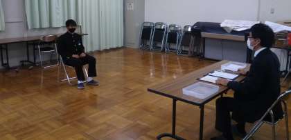 6限目に、先週に引き続いて3年生は、個人面接の練習を実施しました。初めての面接の機会になるので、緊張しているのが伝わってきましたが、"長所、短所""中学時代の思い出""将来の夢"などの質問にしっかりと答えていました。