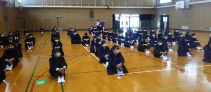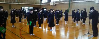 3年生が卒業して初めての全校集会です。1,2年生全員が集まっても100人にもならず、少し寂しくなりました。卒業式には在校生が参列できなかったため、校長先生から卒業式の答辞の中の在校生に向けての言葉が伝えられました。