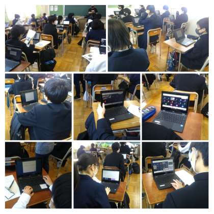 学習用端末を持ち帰り学習等に活用するための準備で、"使用ルール"の確認、家でインターネットにつなげる方法や、Google Meetの使い方等のガイダンスを行いました。明日から"Google Meet"を利用して朝の学活を行う予定です。今日から毎日、家に持ち帰りますが、繊細な機器なので丁寧に扱ってください。