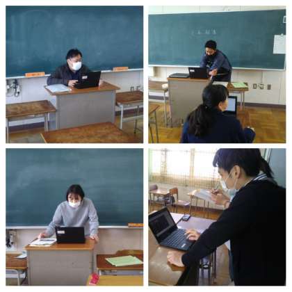 朝、昨日持ち帰った家庭用端末を利用して、ビデオ会議システム(Google Meet)で各学級「朝の学活」を行いました。ハウリングを起こしたり、教員側のパソコンに画像が映らない等々課題もありましたが、改善をして明日以降も「朝の学活」を行いたいと思います。