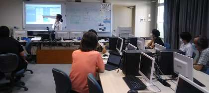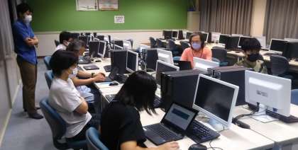 パソコン教室で、定期的に来校いただいているICT教育アシスタントを講師に、教員対象にICT校内研修を行いました。"Googleスライド"を利用してプレゼンテーションを作成したり、"Jamboard"の活用について研修をしました。