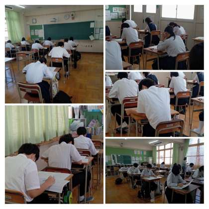3年生は、第2回実力テストを1限から5限まで、国語・英語・社会・理科・数学の5教科で実施しました。これから3年生は進路に向けた大切な時期になってきます。自らの進路の目標を設定し、課題の克服に努めてください。