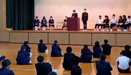 6限目、体育館で生徒会役員選挙立会演説会を行いました。会長、副会長・書記・執行委員合わせて8名の立候補がありました。どの立候補者からも、これからの柴中を”もっと良くしていきたい”という思いがとても伝わってきて、今後が楽しみです。