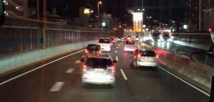 阪神高速神戸線の神戸(摩耶)を通過しました。渋滞があるため、到着は19:00頃の予定です。多少の前後があることをご了承ください。