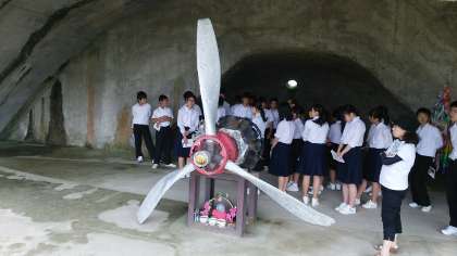 今も残る掩体壕で再び平和学習。