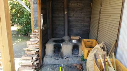 (写真中)昨晩、ご飯を炊いたかまど。見るからに美味しそ〜。