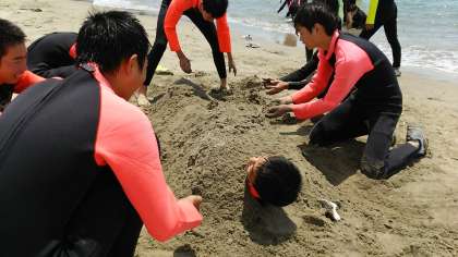 ウィンドサーフィンも無事に終了。風の具合がちょうど良かったのか、例年以上に多くの生徒がスイスイと乗れていたような気がします。
