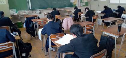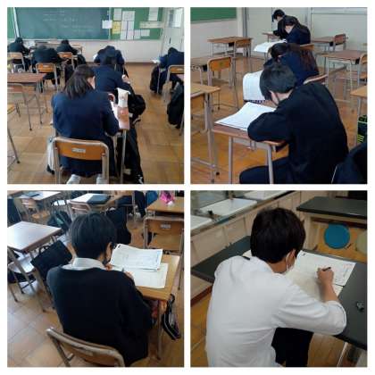 5,6限、2年生は基礎学力と学習意欲の向上を目指し、漢字能力検定試験を実施しました。事前に生徒自身が目標とする”級”を設定し、2級から6級までの試験に挑戦しました。