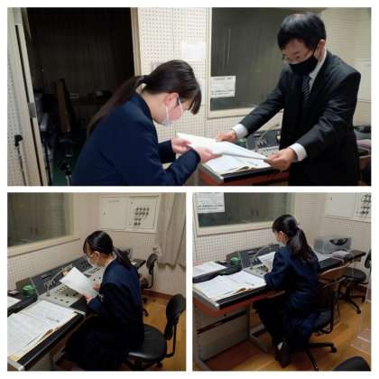 生徒朝礼を生徒会役員の進行により放送で行いました。"生徒会から""今週の行事予定"の報告の後、「東淀川区絵画・写真コンクール」において区長賞を受賞した生徒へ表彰状の授与がありました。校長先生からは、北京オリンピックでのカーリング女子の試合ぶりから、”笑顔が様々な良い相乗効果がある”ことの話がありました。
