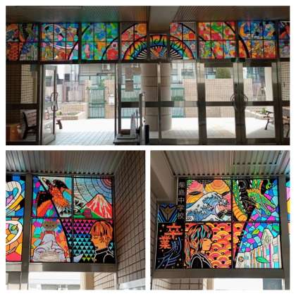 学校ではすでに進路先が決まった生徒たちで、教室等の清掃や校舎入り口のピロティへ卒業制作の設置作業を行いました。