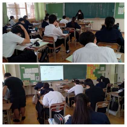 来週の月曜日から、今年度初めての定期テスト(中間テスト)が始まります。各学年とも、授業ではテストに向けての雰囲気が出てきているようです。自分の力が発揮できるように、しっかりと準備をしましょう。