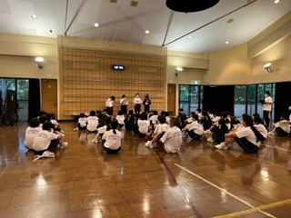 体を動かして答えるクイズや音楽クイズ、さまざまなヒントから先生を当てるクイズ、隙間からチラッと見えたものを当てるクイズ、震源地ゲームなど、実行委員が考えたオリジナルクイズでおおいに盛り上がりました。