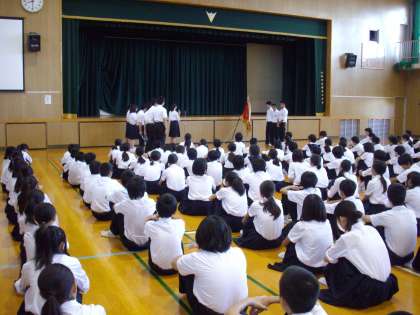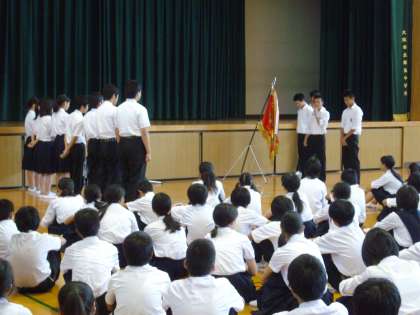 本日は、ラグビー部の全国大会での健闘を祈って、全校朝礼で「壮行会」を行いました。