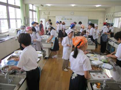 学校元気アップ本部事業のひとつ、授業サポート活動を今年度も展開しております。この日は教育実習生による、調理実習でしたが、地域の方のご協力により、スムーズに授業を進めることができました。地域の皆様方、本当にありがとうございました。そして授業をがんばった生徒のみなさん、「1年生のときから、ずいぶん成長したね〜!」と地域のみなさんからもお褒めの言葉を頂戴しております!
