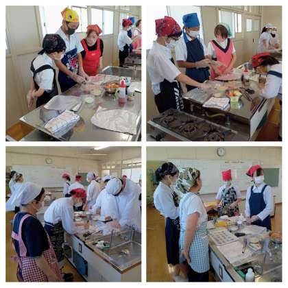 3,4限、2年生が家庭科の授業で3年ぶりに”調理実習”を行いました。地域の女性会の方々にサポートに来ていただき、一人ひとりがハンバーグとお汁を作りました。授業が始まったときは出来上がるか心配しましたが、全員、美味しそうなハンバーグが出来上がりました。