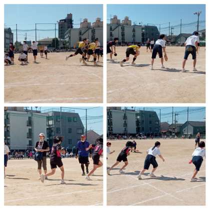 1年学年競技、450m競走、クラブ対抗リレー の様子