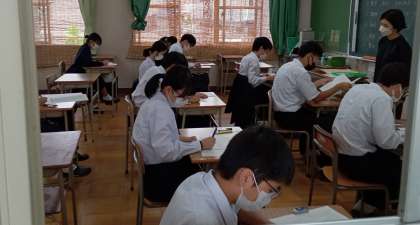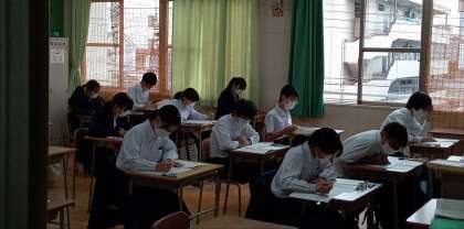 3年生は、第2回実力テストを実施しました。1限から5限まで、国語、数学、理科、社会、英語の5教科に挑みました。3年生はいよいよ進路決定に向け大切な時期になってきます。自らの進路の目標を設定し、課題の克服に努めてください。