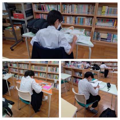 元気アップの柴スタ(自主学習会)が図書室で開かれています。明後日からの2学期中間テストに向け、黙々と学習に取り組んでいました。