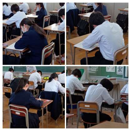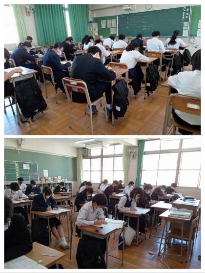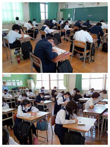 本日、中間テスト(2日目)を実施しました。全学年とも"英語""理科""国語"の3教科のテストに挑みました。来週にはテスト結果が返却されます。各自で結果を振り返り、次の学習につなげてください。