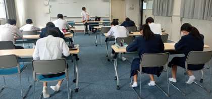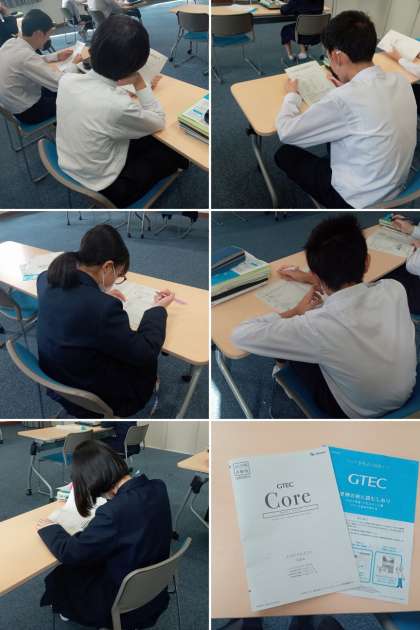 3年生の英語の授業では、来週実施する「大阪市英語力調査(GTEC)」のトライアルテストを行っています。”リスニング””リーディング””ライティング”の問題に挑戦しました。本番では”スピーキング”テストも加えて実施します。
