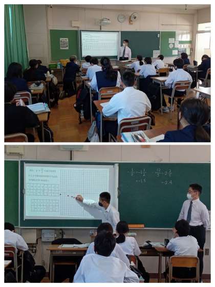 1年生の数学の授業は”比例・反比例”を学習しています。今日は「反比例のグラフ」についての学習で、y=12/x にあてはまる点を一つ一つとり、それが曲線になることを確認して丁寧に点をつないでグラフを書きました。