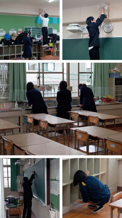 5限目、全校で大清掃を行いました。扇風機・加湿器の清掃や廊下の汚れなど、普段はできない箇所も手分けをして清掃をしました。これで1年間の汚れもなくなり綺麗になりました。