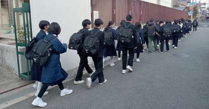 1年生は、自分をみつめ、職業について知り、将来の職業選択を考えるなどの目的で、本日、『職場訪問』を実施します。午前は全員で天王寺動物園へ行き、スケッチ、昼食後、飼育員さんの講話をしていただきます。午後からは4つのグループに分かれ、4つの職場へ行き話を聞く予定です。自らの将来(進路)を考える一日にしてほしいと思います。
