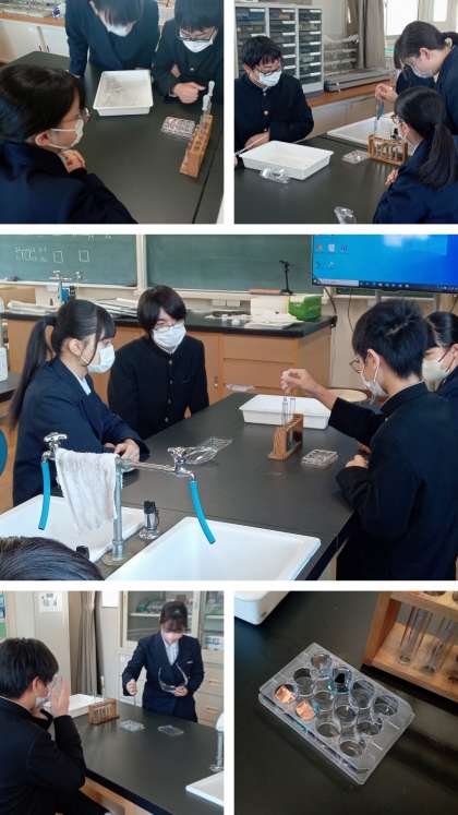 3年生の理科の授業は、”金属イオンへのなりやすさを調べる”実験を行いました。以前に学習済みですが、コロナ禍で実験をすることに制約もあったのでできませんでした。入試前の復習として実験をしましたが、実験結果の予想は全班正解のはずが……。