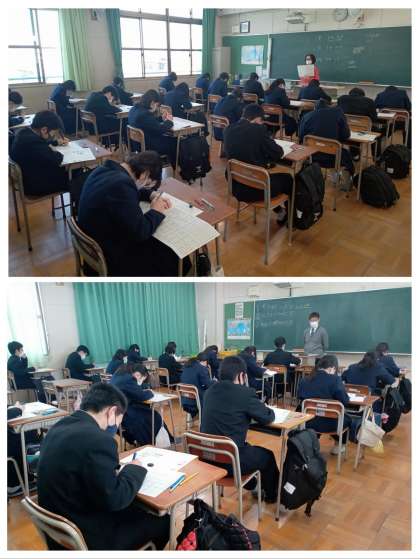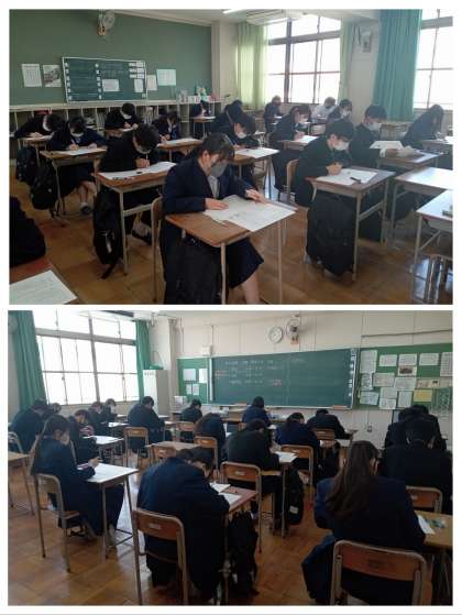 今日から1・2年生の学年末テストが始まりました。1日目の今日は、”英語””社会””技術家庭”の3教科のテストに挑みました。今年度最後のテストになりますが、学習の課題等を整理し来年度につなげてほしいと思います。