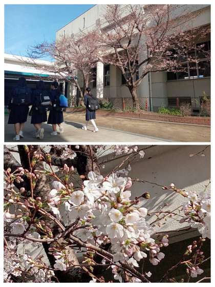 初夏のような暖かさになり、体育館横の桜の木も開花しました。例年よりも早い開花で4月の入学式までもつのかが、少々心配です。