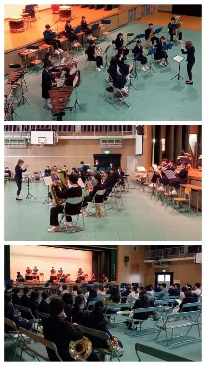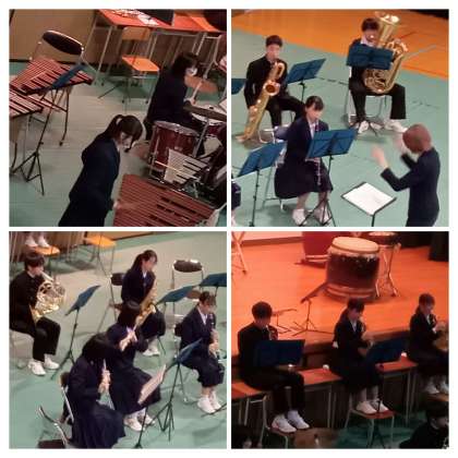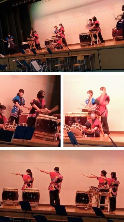 午後、体育館で太鼓部・吹奏楽部の『合同演奏会』が開催されました。太鼓部の迫力ある演奏で始まり、そして吹奏楽部の息の合ったハーモニーが披露されました。途中には太鼓部と吹奏楽部の合同演奏もあり、会場は大きな拍手に包まれていました。