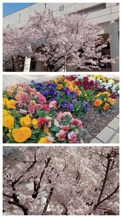 今年は桜の開花が例年よりも早かったため、体育館横の桜の花は少しずつ散り始めていますが、正門前の花壇のパンジーの花は日ごとに多くなってきました。令和5年度のスタートです。本年度も本校の教育活動にご理解、ご支援をお願いいたします。