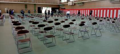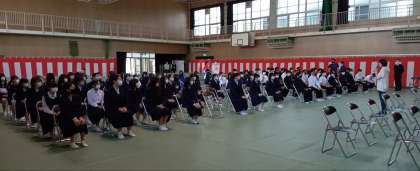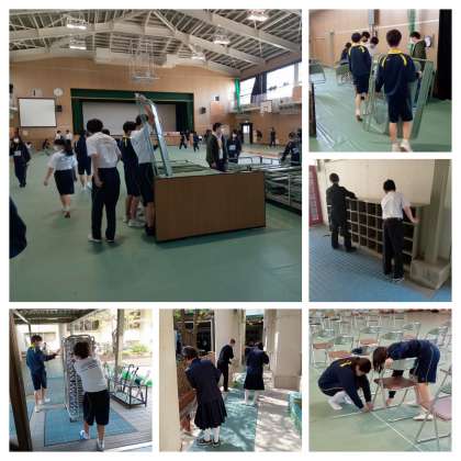 午後、在校生が集合して明日の入学式に向けて会場準備を行いました。新入生の入学を在校生はもちろん教職員一同、楽しみにしています。